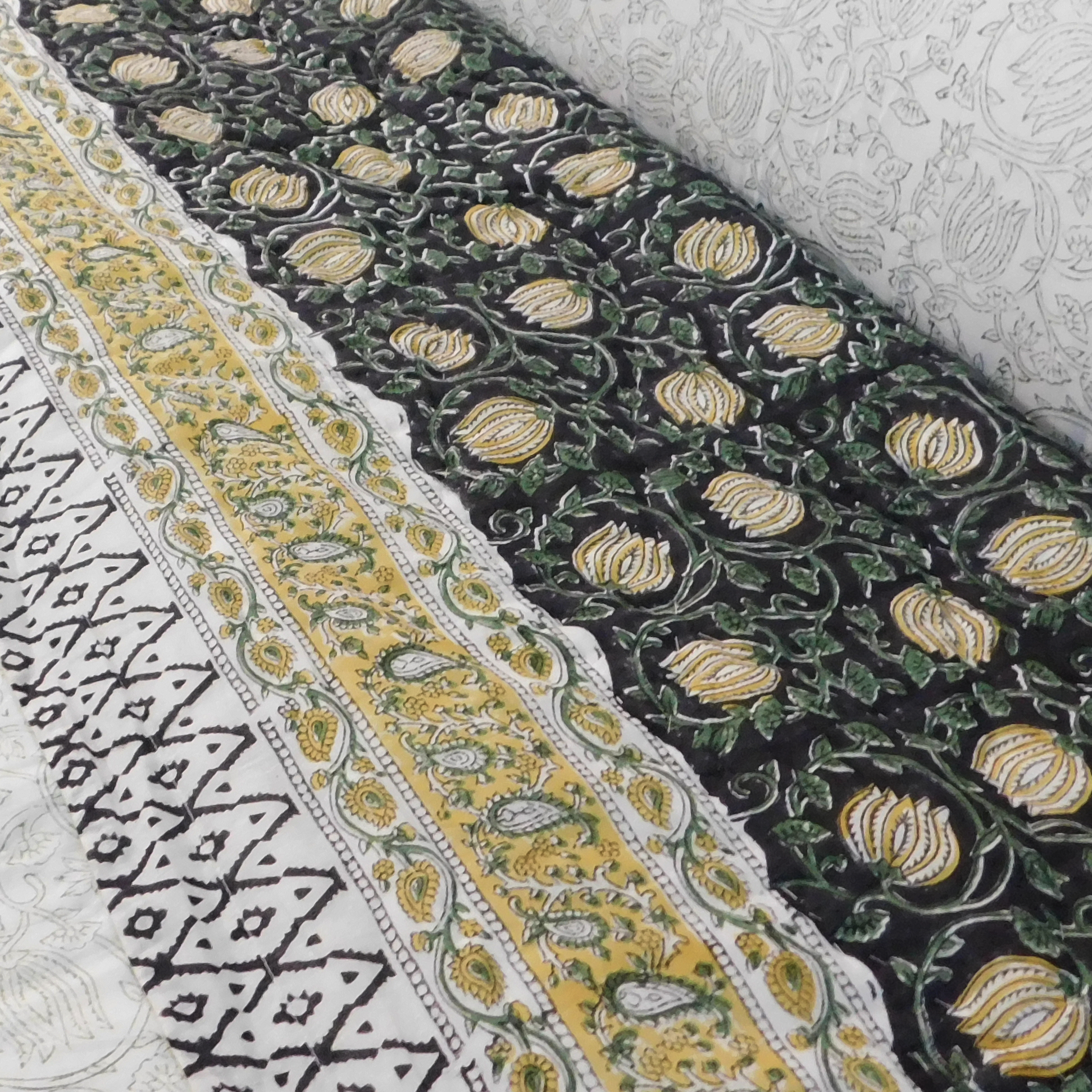 - Craft: Hand block printed with non-toxic natural dyes and hand quilted by artisans in India under fair-trade conditions